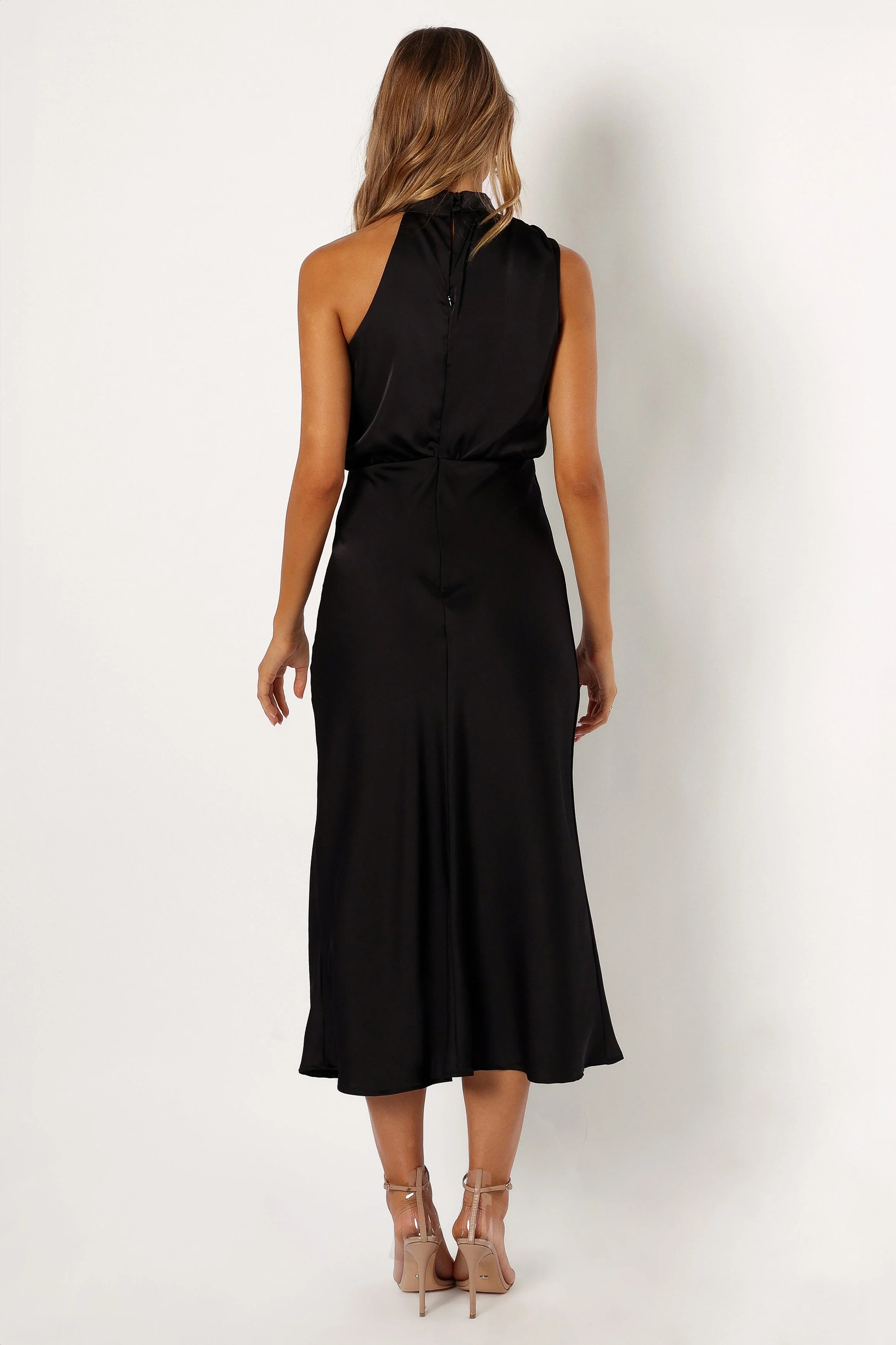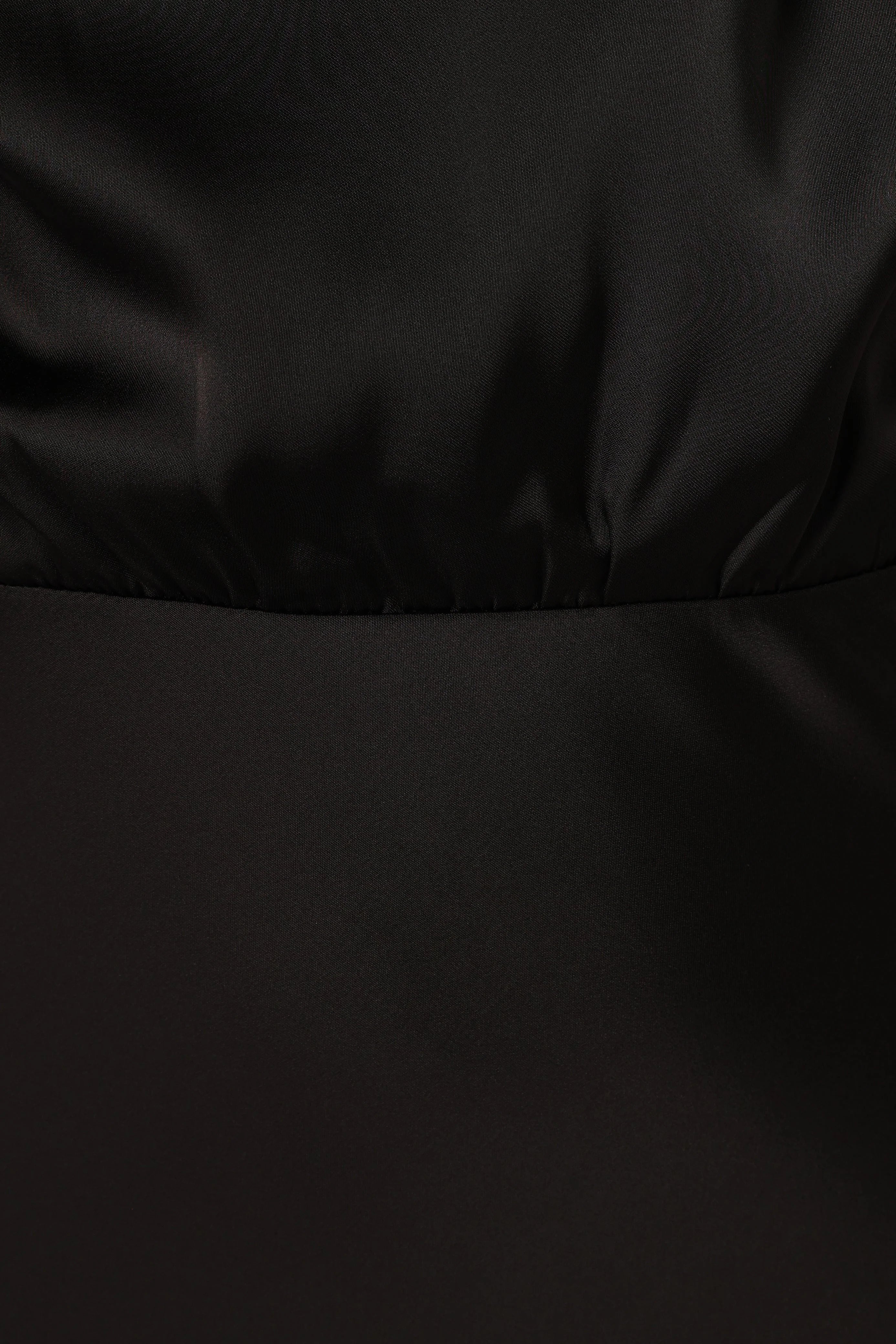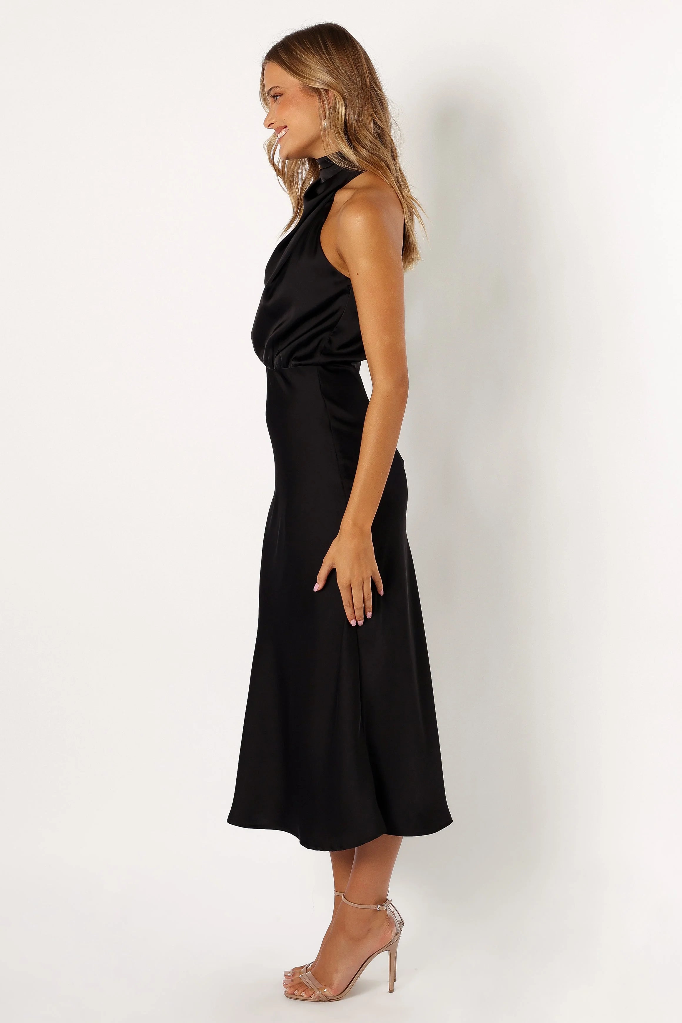 Look and feel your best in this stunning event wear dress! Featuring a midi length, an asymmetric high round neckline with gathered pleat detail, plus a back neck opening with button close, it's the perfect party dress for any special occasion. Not only does it look fabulous, but it feels as good as it looks too - crafted from a soft satin feel just for extra comfort.