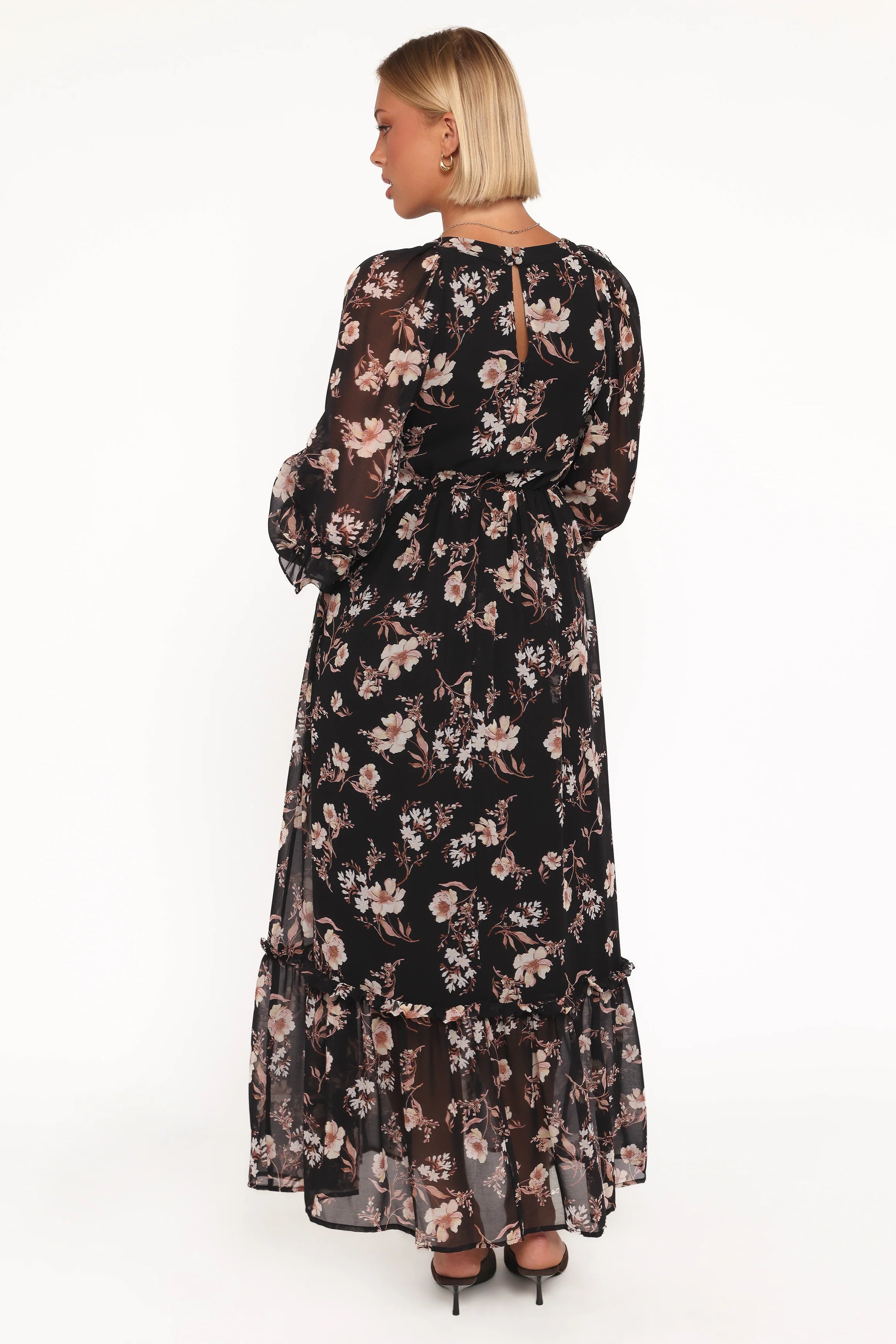 Turn heads wherever you go in the Evian Long Sleeve Maxi Dress in Black Floral. This stunning piece effortlessly combines elegance with contemporary style, featuring a flattering v-neckline that creates a beautiful silhouette while the flowing maxi length adds an air of sophistication to any occasion.