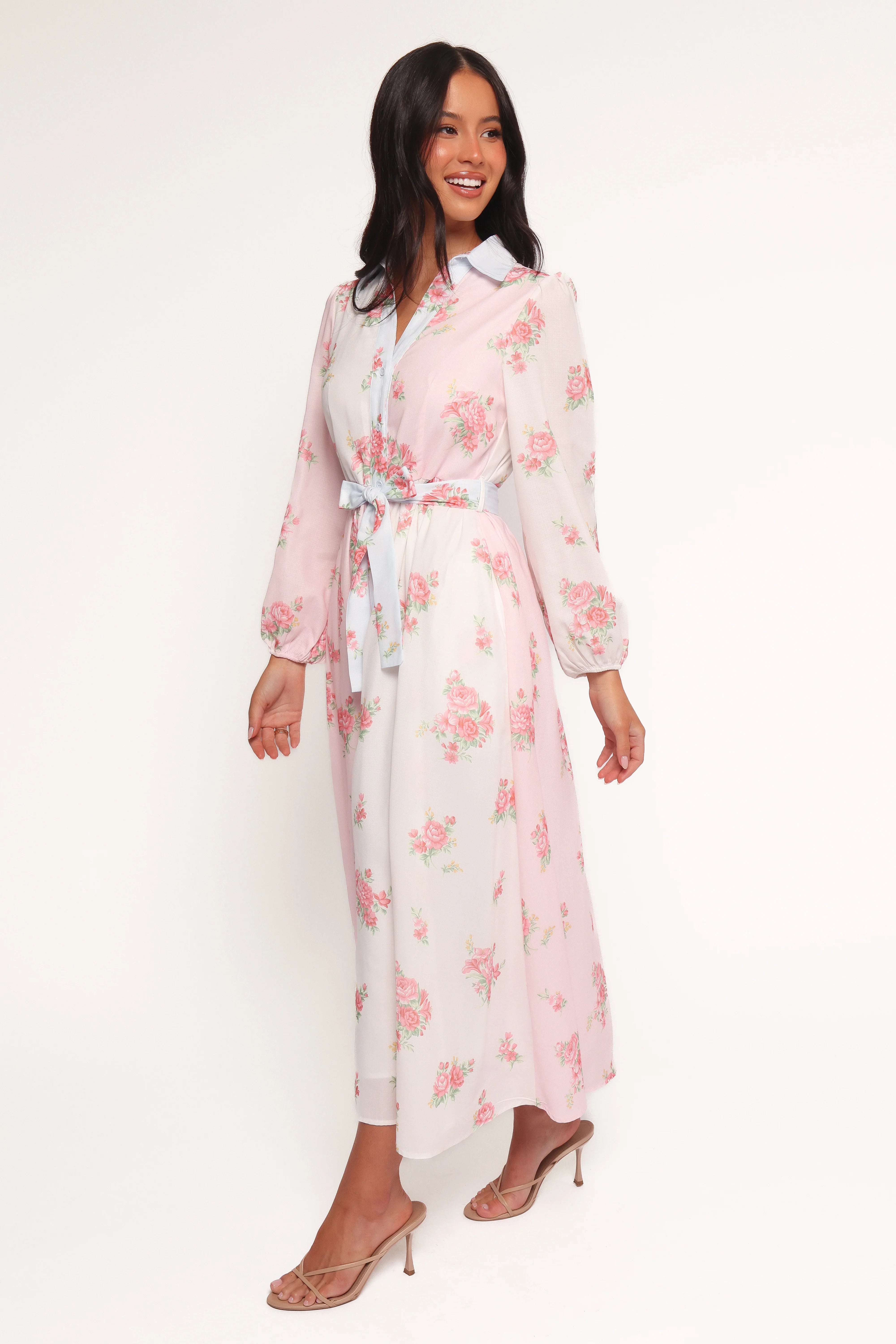 Add effortless charm to your wardrobe with the Juni Button Up Maxi Dress - Floral. Designed with a breezy silhouette, this maxi-length dress features a bold color block design paired with a fresh floral print that's all about standing out.