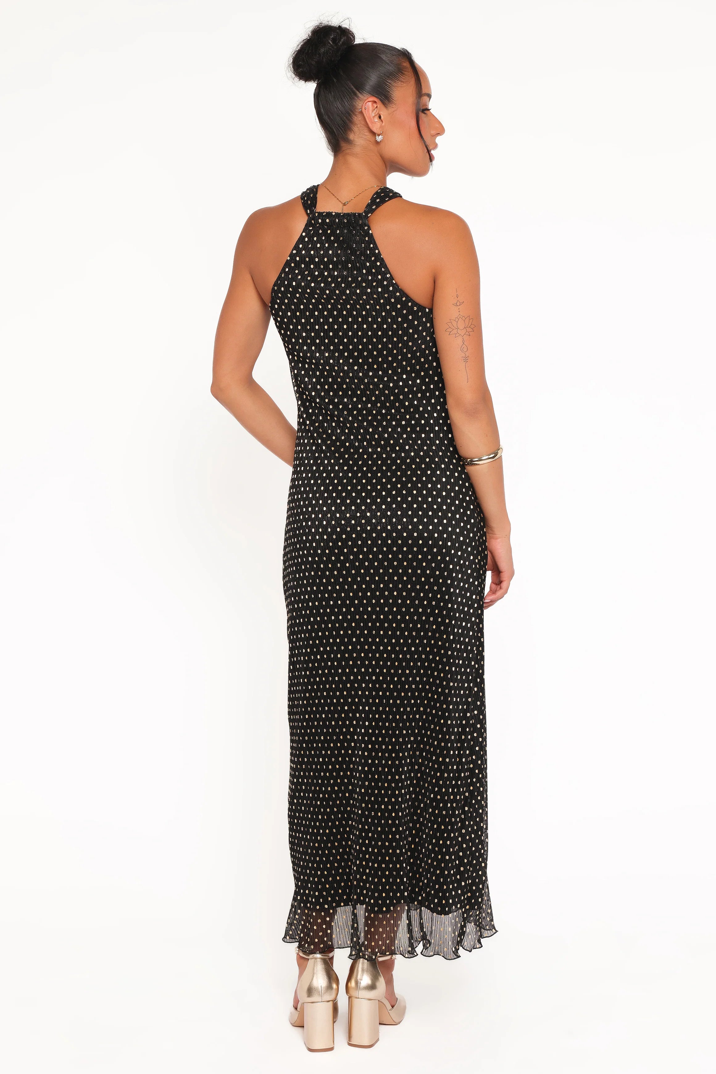 This season, update your wardrobe with this stunning maxi dress that combines effortless style and feminine charm. Featuring a classic halterneck style neckline and sleeveless design, the dress is made from light plisse material for an elegant drape.
