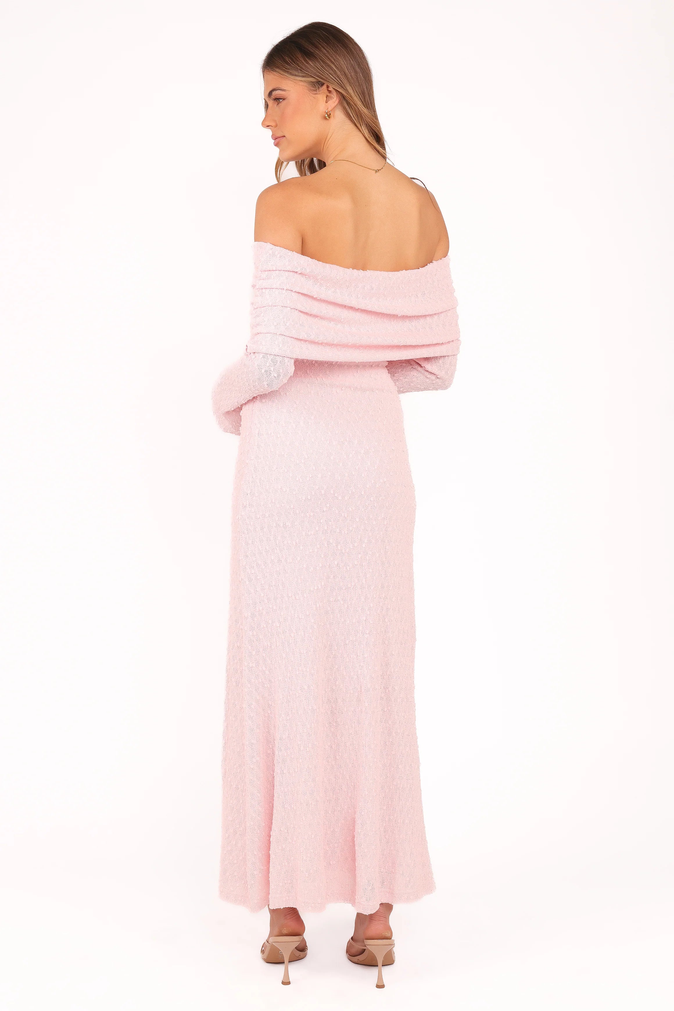Turn heads in the Wilma Off Shoulder Dress, a stunning blend of chic and sophistication. With its flattering midi length and effortlessly elegant off-the-shoulder design, this dress strikes the perfect balance between refined and modern.